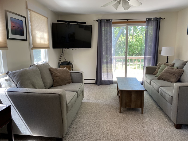 bright and airy family room, which is adjacent to a private deck. Amenities include *air conditioning*, dishwasher, *washer/dryer*, cable TV, Internet, and a gas grill. The home also features an